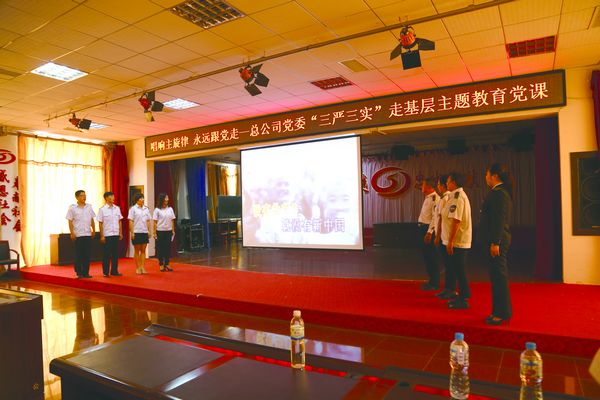 三嚴三實專題教育開展以來,廣大黨員干部認真按照總公司黨委制定的教育方案,一個環(huán)節(jié)一個環(huán)節(jié)地抓落實。為讓教育更富有吸引力,實效更突出,黨委編排了一堂與眾不同的黨課,采取了經(jīng)典紅歌演唱、優(yōu)秀黨員事跡誦讀、普通黨員暢談體會的形式進行宣傳教育。課堂上,大家共同聆聽優(yōu)秀共產黨人李大釗、焦裕祿的事跡誦讀,觀看優(yōu)秀共產黨員楊善洲事跡介紹的DV短片,來自基層的三名優(yōu)秀駕駛員、共產黨員竇玉海、周麗媛和鄭玉曉以詩歌的形式講述了發(fā)生在崗位上的真實故事。各單位黨員代表也走上臺,結合自身崗位實際,講述學習的心得感受。城管局副調研員張祚建參加了黨課走進三公司活動,給予了很高的評價,認為黨課教育形式新,內容實,受震撼,希望把這種學習上的創(chuàng)新引入到工作中,落腳在實字上。